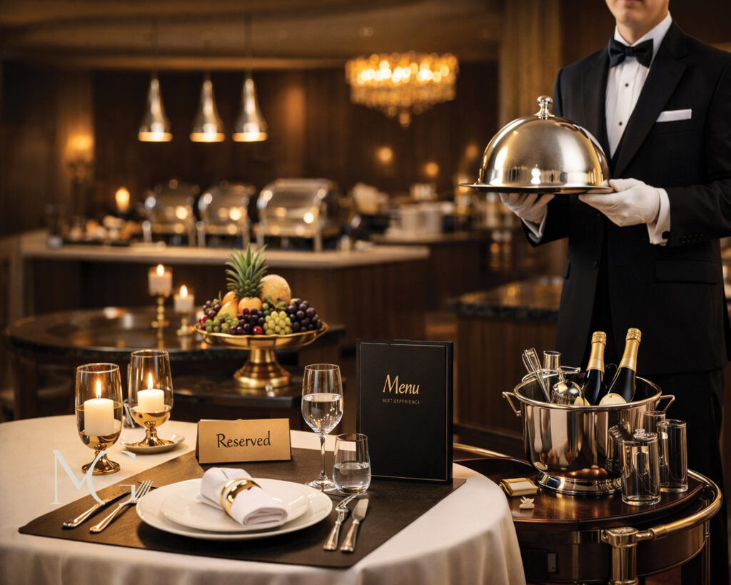 باعث میشود ارتباط بصری مؤثری با مهمان برقرار شود. این جزئیات ساده اما حرفهای، بخشی جداییناپذیر از تشریفات رستورانی محسوب میشوند.